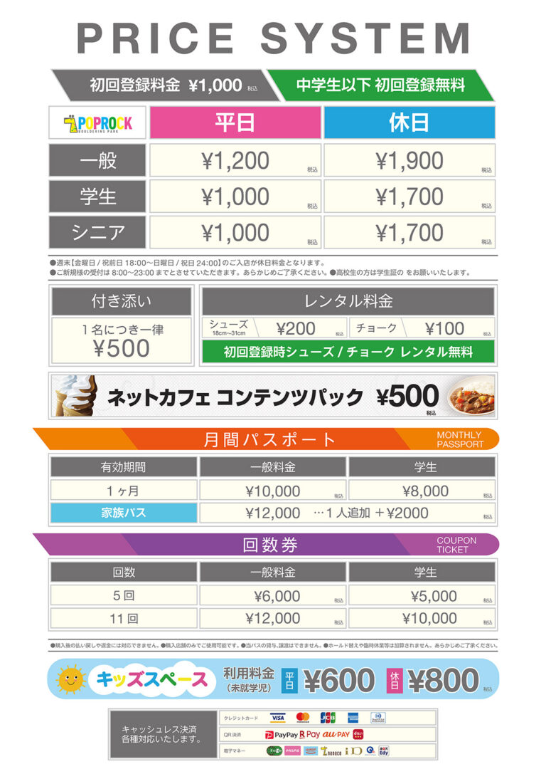 ※中学生のみのお客様は18:00以降のご利用は出来ません。(保護者様同伴の場合は22:00まで)