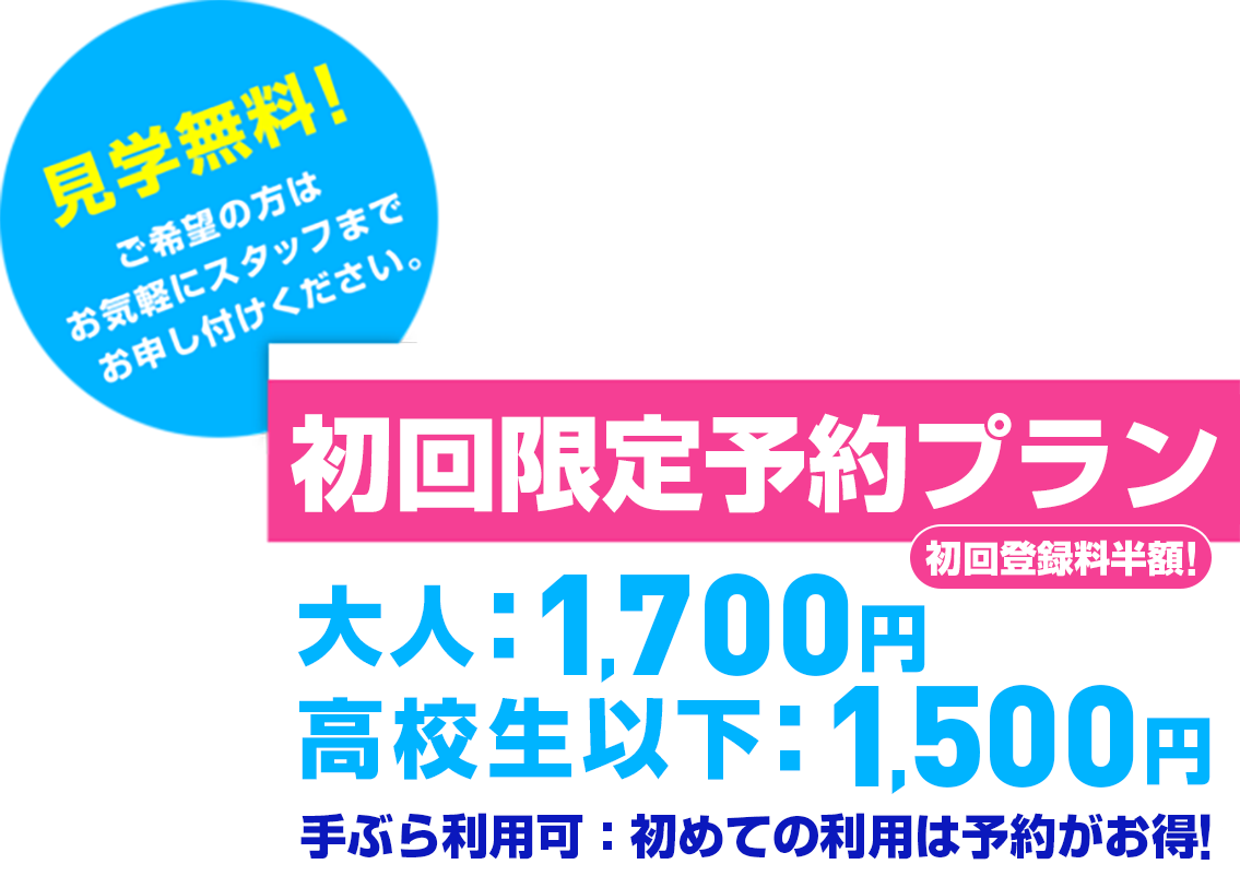 ※小学生の方は保護者様の付き添いが必須となります。保護者様1人にお子様2人までご利用頂けます。
