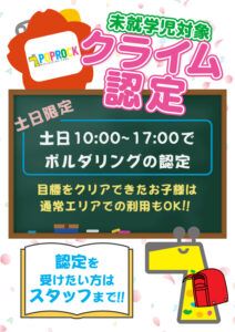 ※高校生のお客様は保護者様同伴であったとしても22:00以降のご利用は出来ません。※中学生のみのお客様は18:00以降のご利用は出来ません。(保護者様同伴の場合は22:00まで)※高校生、中学生の方は保護者様のサイン付き誓約書をご持参いただいた場合、保護者様の同伴は初回から不要となります。※学生の方は学生証の提示が毎回必要です。 学生と証明できない場合は、一般料金となります。(小学生の方は提示不要)※小学生の方は保護者様の付き添いが必須となります。保護者様1人にお子様2人までご利用頂けます。※付き添いの方には初回登録料が発生しません。※必ず子供は1人ずつ登らせ、保護者様が見守るようお願い致します。※クライミングできるのは小学生からとなります。